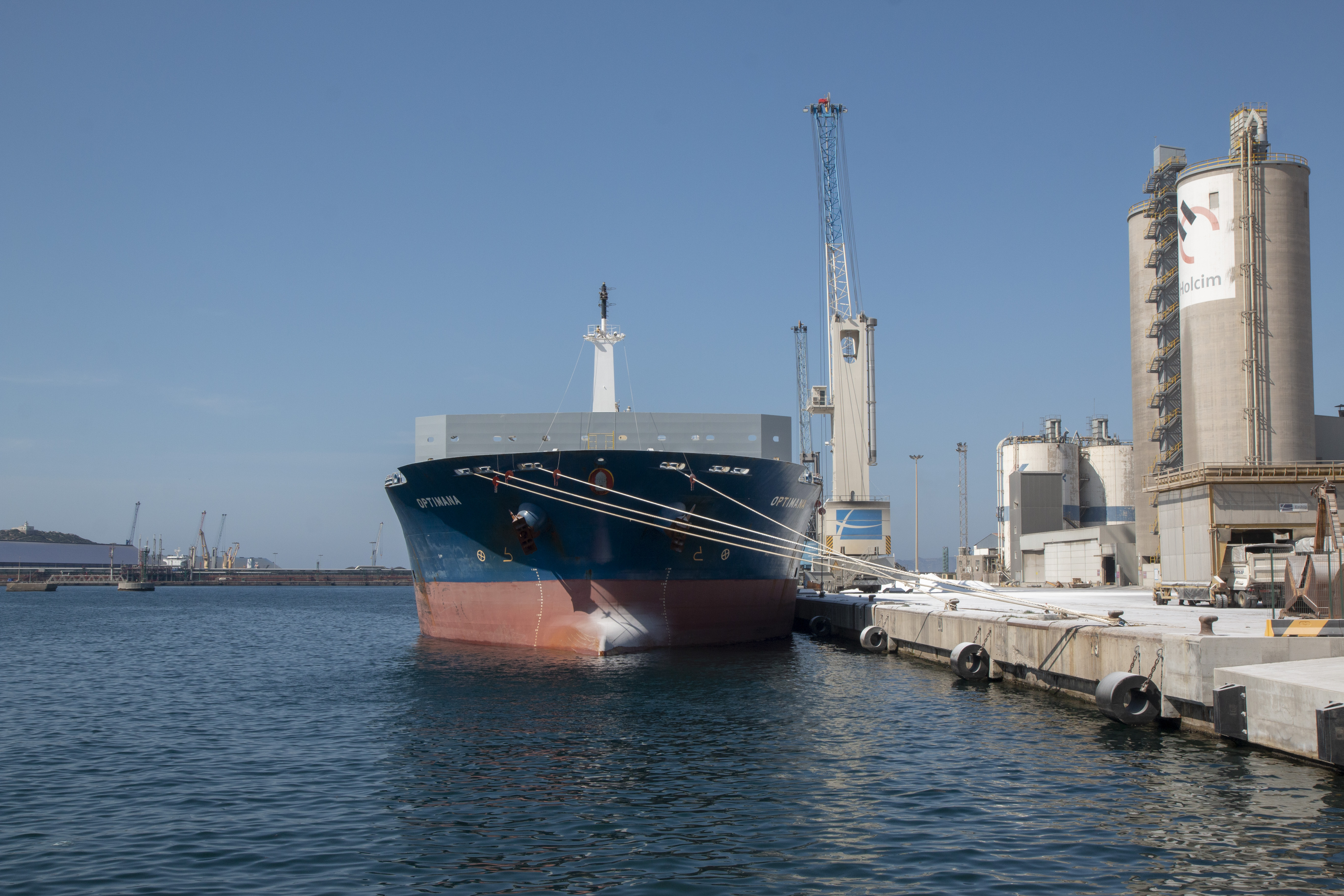 Cartagena, 6 de abril de 2021. El buque Optimana, con bandera de Reino Unido y con 212,50 metros de eslora, cargó la semana pasada en el muelle Príncipe Felipe, 38.910 toneladas de sulfato de sodio con destino a Brasil. “Una gran operativa para la exportación de esta mercancía que supone al año alrededor de 150.000 toneladas anuales que salen del Puerto de Cartagena en grandes buques con destino a Brasil y en pequeños buques con destino a Europa, principalmente a Italia”, ha informado la presidenta de la Autoridad Portuaria, Yolanda Muñoz.